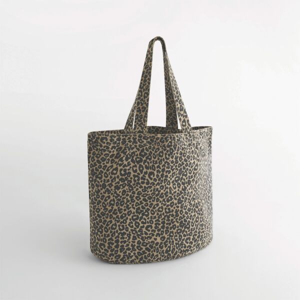 70% gerecycled katoen (GRS-gecertificeerd) / 30% polyester (GRS-gecertificeerd). Verwassen effect met luipaardprint. Stoffen draaghengsels. Kan met de hand of over de schouder worden gedragen. Afneembaar label voor eenvoudig rebranding. Elk stuk is uniek door de gebruikte verftechniek; kleurvariaties en vervaging kunnen in de loop van de tijd optreden.