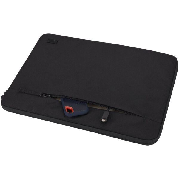 De Case Logic Invigo 14" laptophoes is gemaakt van gerecycled materiaal en heeft een 10 mm dikke gewatteerde binnenkant om de laptop te beschermen. Deze hoes is gemaakt met een buitenkant van 100% gerecycled 600D polyester en een voering van 150D polyester. In het voorvak met rits kunnen snoeren en kleine accessoires handig worden opgeborgen. De driekwart ritsopening geeft toegang tot de laptop vanaf de boven- of zijkant van de hoes.